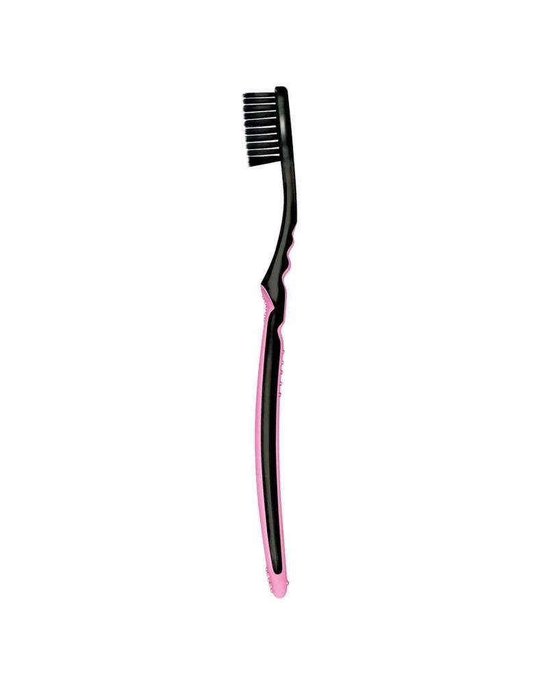 Possui cerdas com pontas mais finas que penetram e removem os resíduos de alimentos entre os dentes e ao longo da linha da gengiva