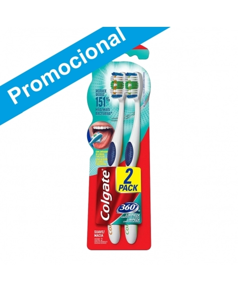 A escova dental Colgate 360° foi projetada para proporcionar uma higiene bucal completa e mais saudável. Suas características exclusivas limpam os dentes, a língua, bochechas e gengiva removendo mais bactérias.