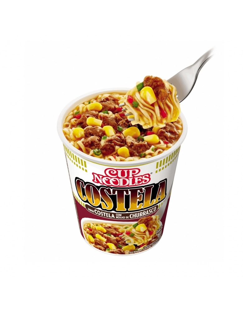 Experimente o surpreendente sabor de Cup Noodles Costela com Molho de Churrasco. É irresistível. O sabor que faz a combinação perfeita com milho, pimentão e cebolinha. É Cup and go!
