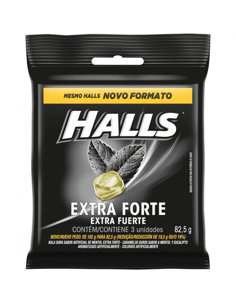 Bala HALLS Extraforte Embalagem com 3 Unidades de 27.5g.