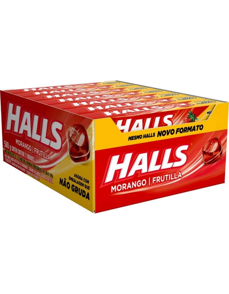 MERCEARIA>BOMBONIERE>BALAS E DROPS>HALLS>HALLS MORANGO 21 UNIDADES DE 28G