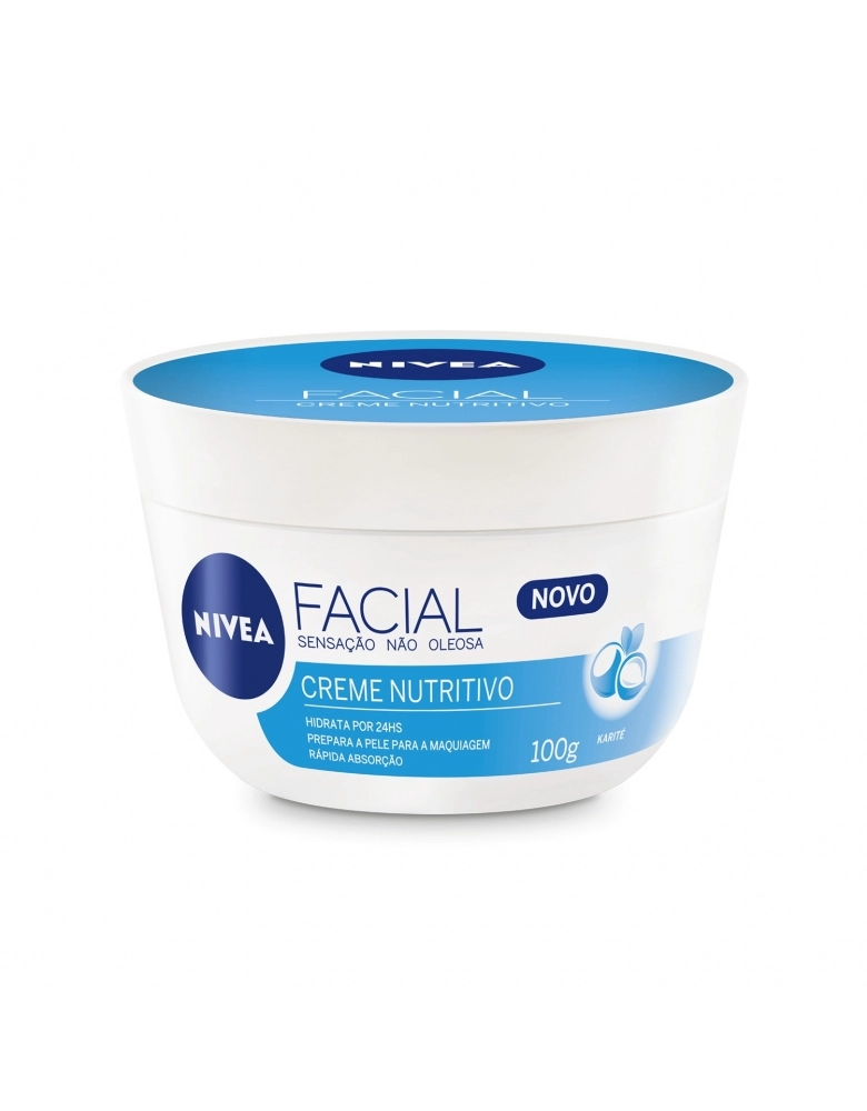 NOVO NIVEA Creme Facial Nutritivo, sua fórmula ultra leve com tecnologia Hydro-Waxes à base de água e Karité, proporciona hidratação intensa por 24h sem deixar sensação oleosa e ainda prepara a pele para a maquiagem, para uma pele bonita e com aspecto saudável.