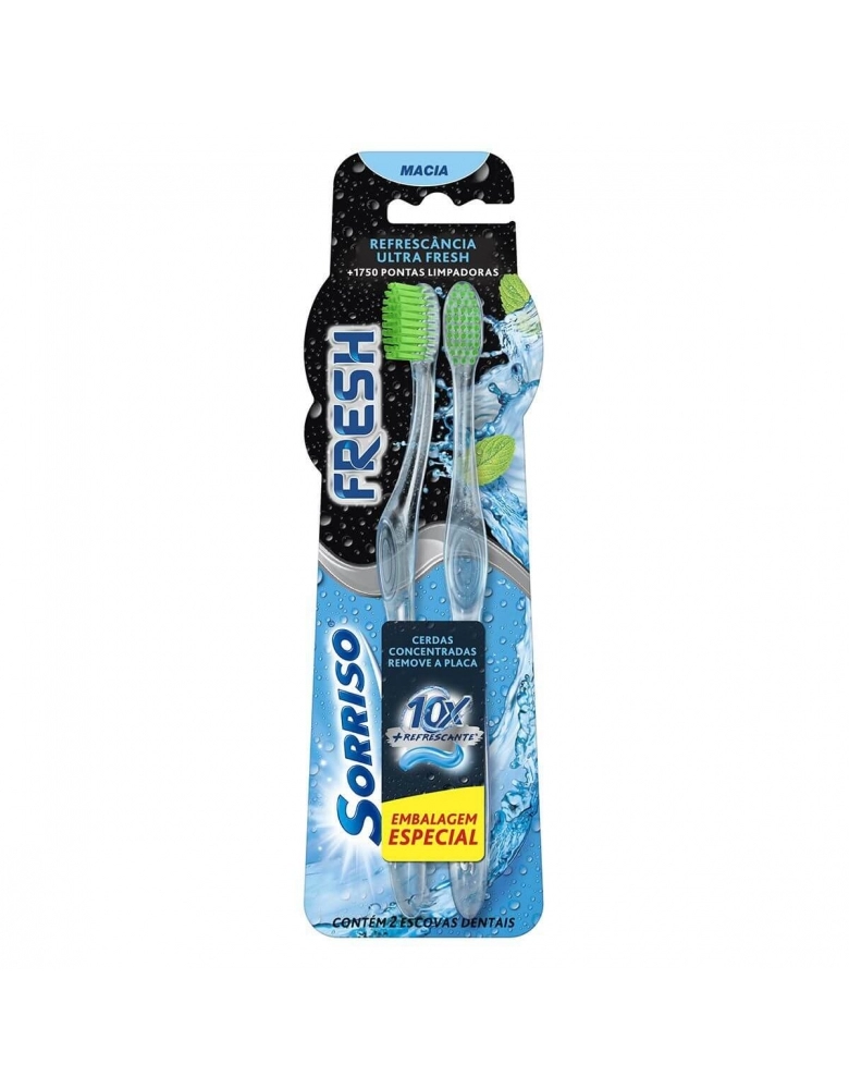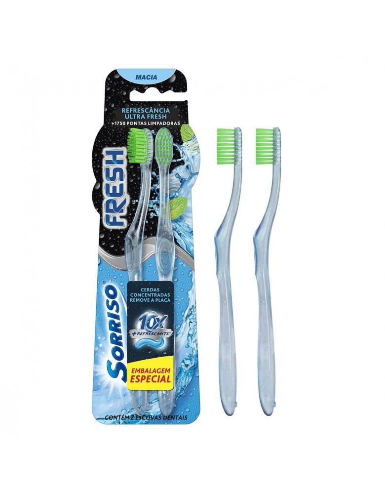 A Escova Dental Sorriso Fresh garante 10x mais refrescância quando utilizada com o creme dental Sorriso Fresh com cerdas macias e de alta densidade que removem a placa sem agredir a gengiva.