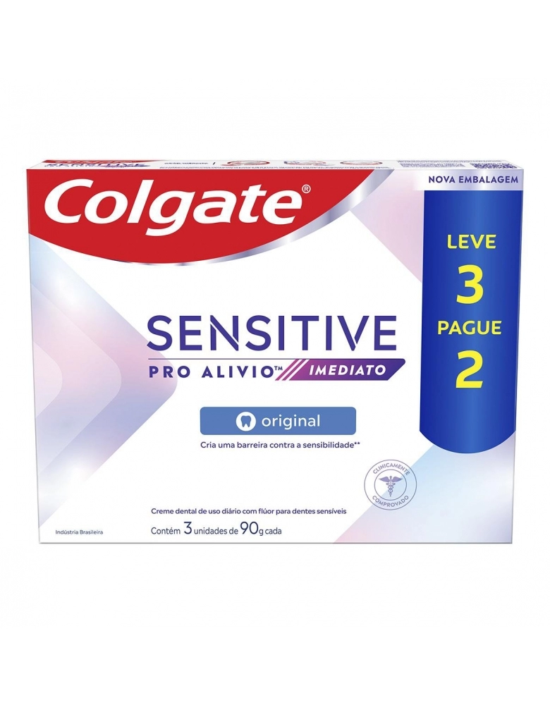 CREME DENTAL COLGATE SENSITIVE PRO ALÍVIO IMEDIATO ORIGINAL 90G 3 UNIDADES