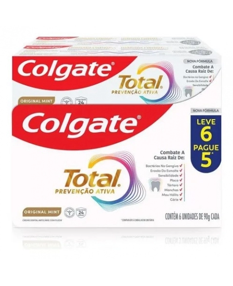 CREME DENTAL COLGATE TOTAL ORIGINAL MINT BISNAGA PACK 6 X 90G LEVE MAIS PAGUE MENOS