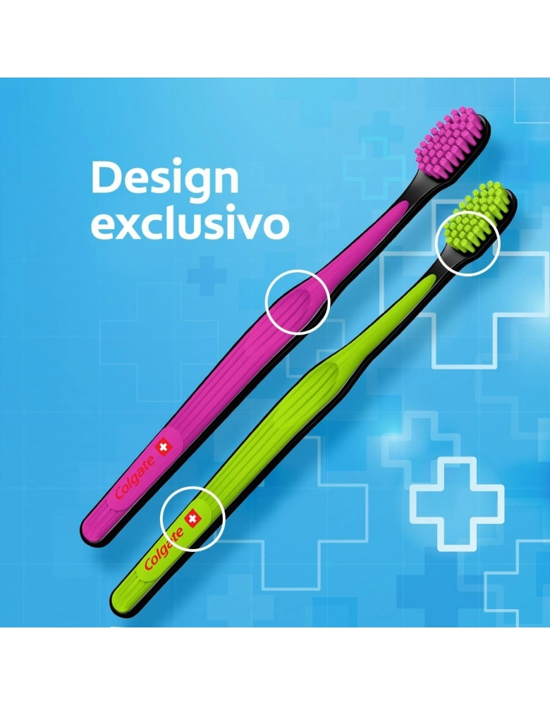 Escova dental com mais de 5500 cerdas com pontas ultra finas. Design exclusivo;