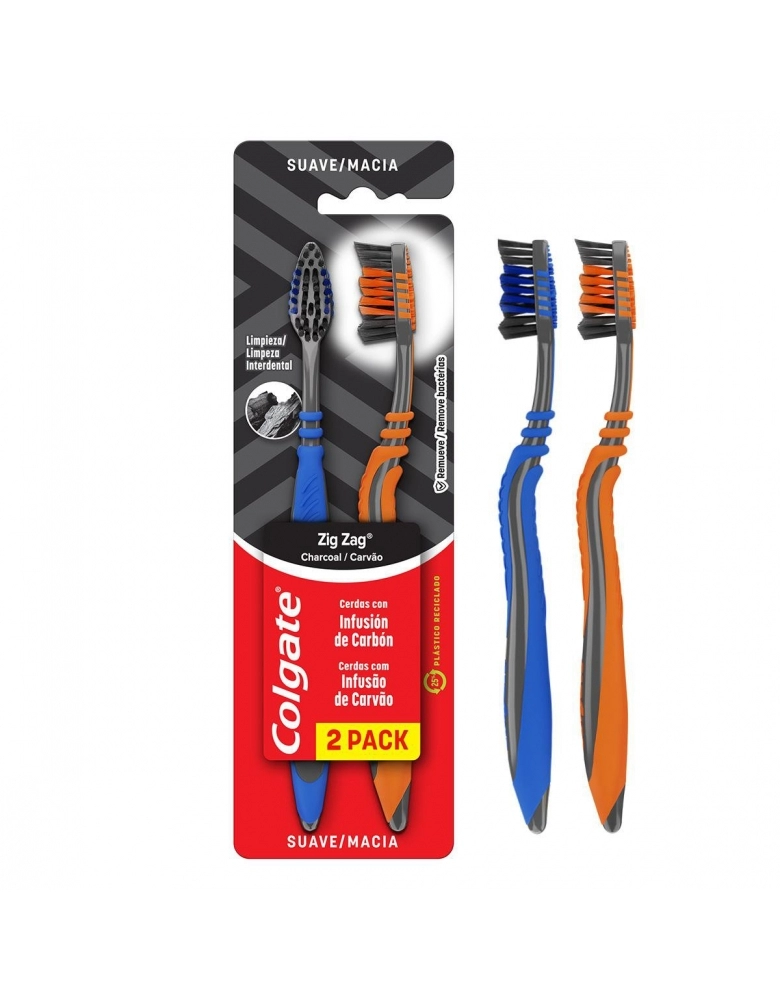 ESCOVA DENTAL COLGATE ZIG ZAG CHARCOAL 2PK