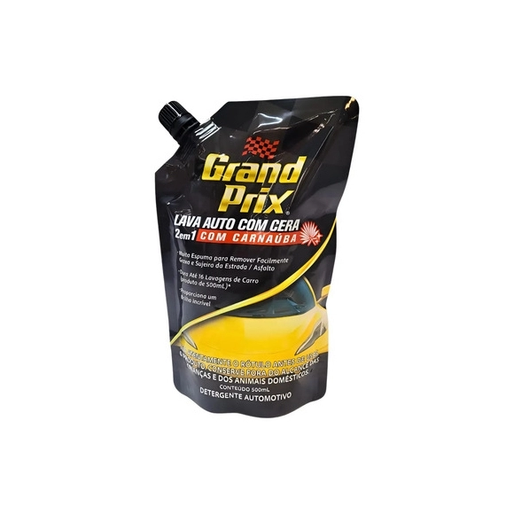 O GrandPrix Doypack Shampoo com Cera 500ml é um produto para cuidados automotivos que limpa, dá brilho e protege a pintura, proporcionando acabamento lustroso e duradouro.