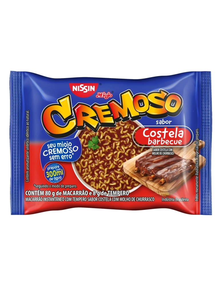 MERCEARIA>MASSAS >LÁMEN>LÁMEN CREMOSO>NISSIN LÁMEN CREMOSO SABOR COSTELA COM MOLHO DE CHURRASCO 88G