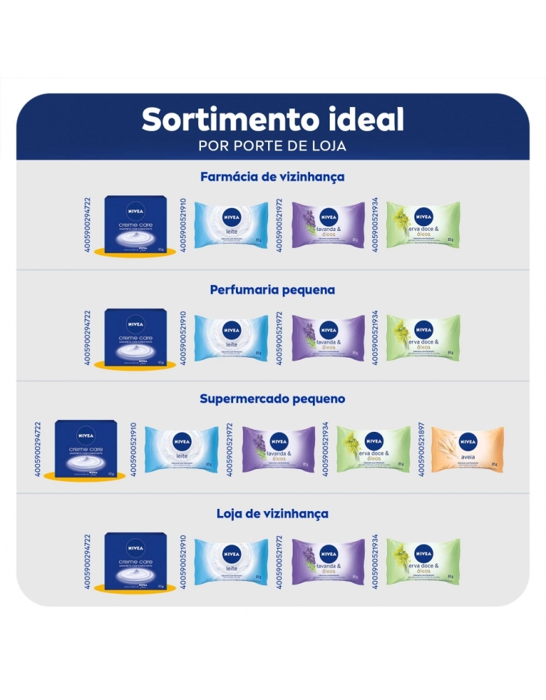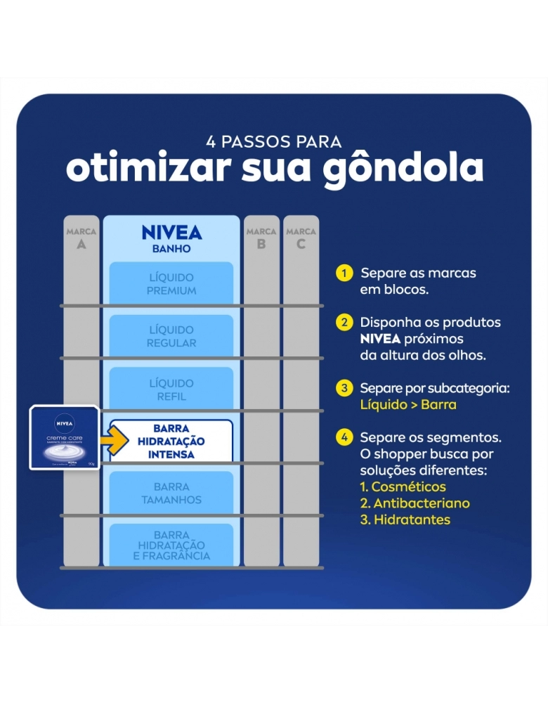 Sabonete hidratante em barra para cuidar da sua pele durante o banho. Cuidado único de NIVEA especial para você. Aproveite!