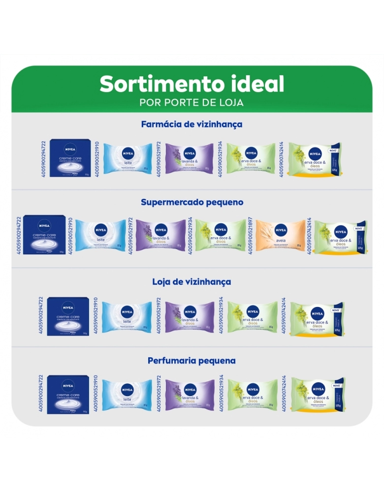 Sabonete hidratante em barra para cuidar da sua pele durante o banho. Cuidado único de NIVEA especial para você. Aproveite!