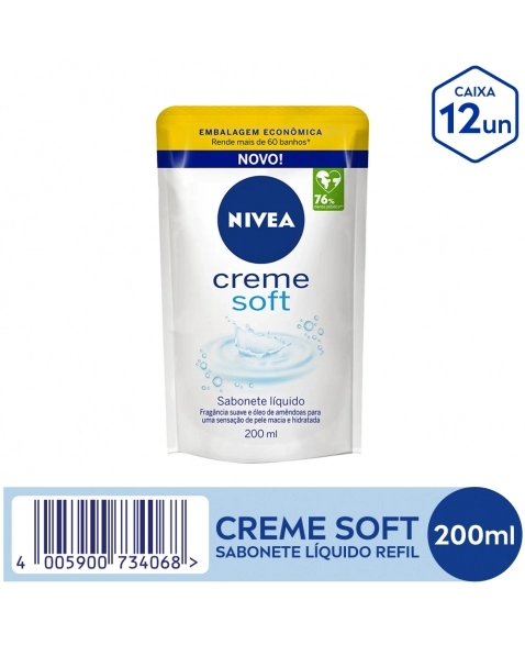 O sabonete líquido NIVEA Creme Soft Refil é ideal para quem busca uma pele hidratada e bem cuidada. Com suave fragrância de amêndoas, é ideal para uso diário. Confira!