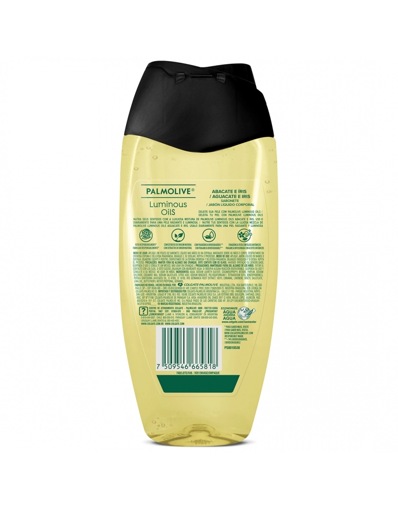 HIGIENE E BELEZA>HIGIENE PESSOAL>SABONETES>SABONETE LÍQUIDO>PALMOLIVE>SABONETE LÍQUIDO PALMOLIVE LUMINOUS OILS ABACATE E ÍRIS 250ML