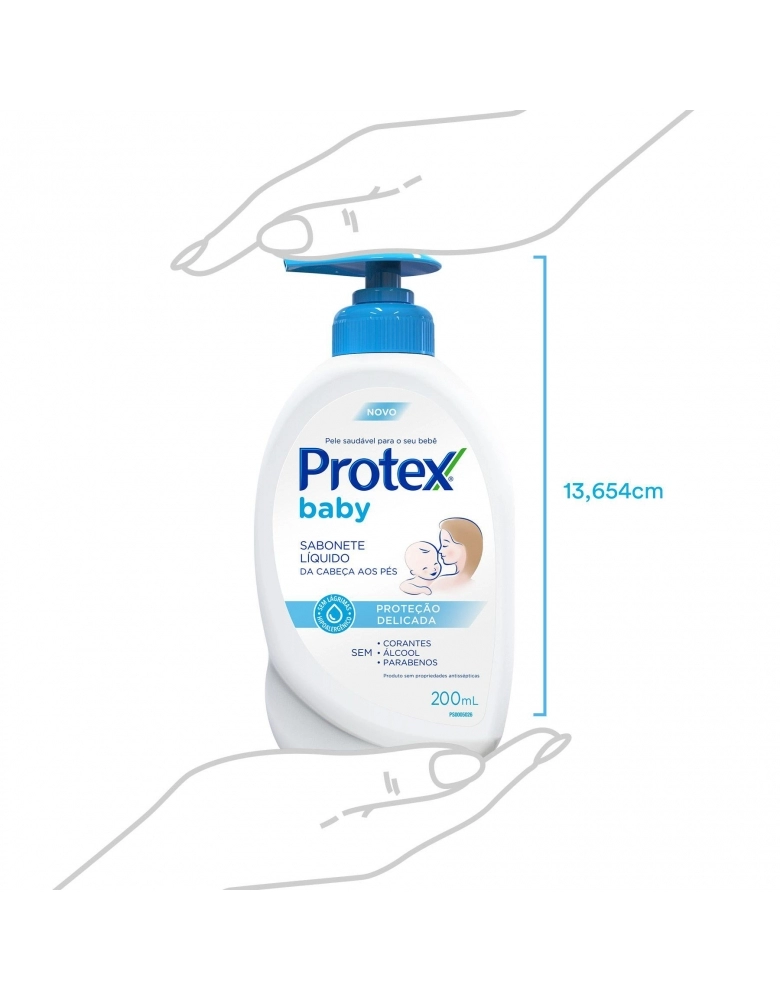 O novo sabonete líquido Cabeça aos Pés Protex Baby Proteção Delicada mantém a barreira de proteção natural da pele do seu bebê garantindo uma pele saudável e protegida. Sua fórmula suave, livre de álcool, parabenos e corantes, é hipoalergênica e não arde os olhos.