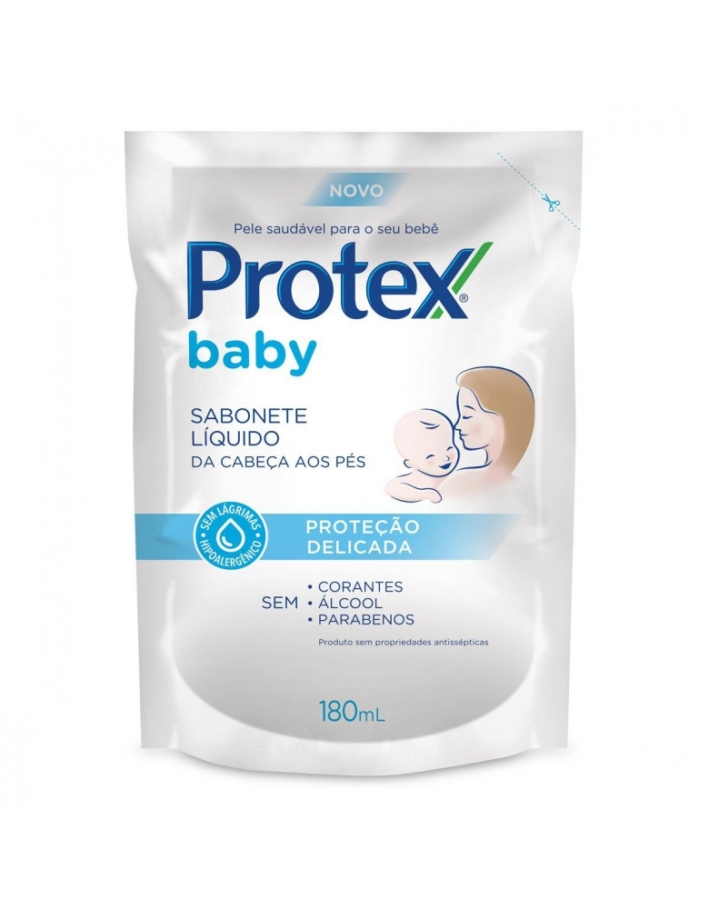 O refil do sabonete líquido Cabeça aos Pés Protex Baby Proteção Delicada mantém a barreira de proteção natural da pele do seu bebê garantindo uma pele saudável e protegida.