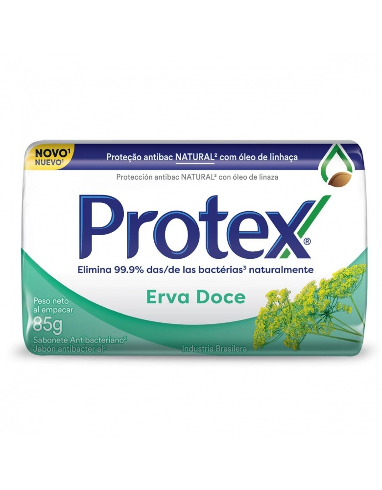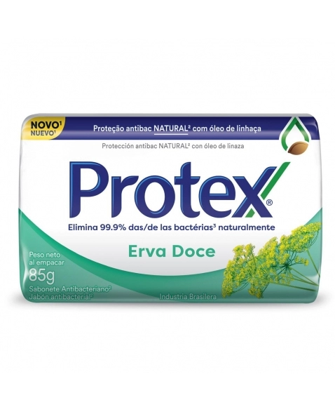 Protex Erva-Doce contém extratos de erva-doce, oferecendo a você e toda a sua família uma pele naturalmente saudável, protegida e perfumada.