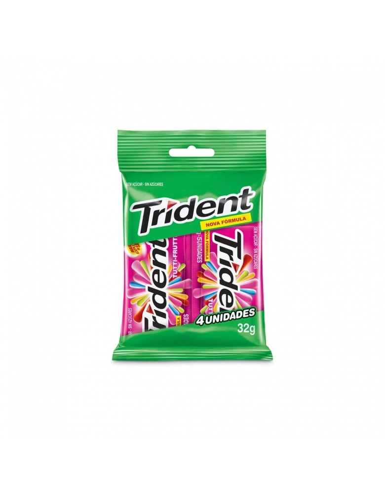 Goma de mascar Trident sabor tutti frutti, Embalagem com 4 Unidades de 8g