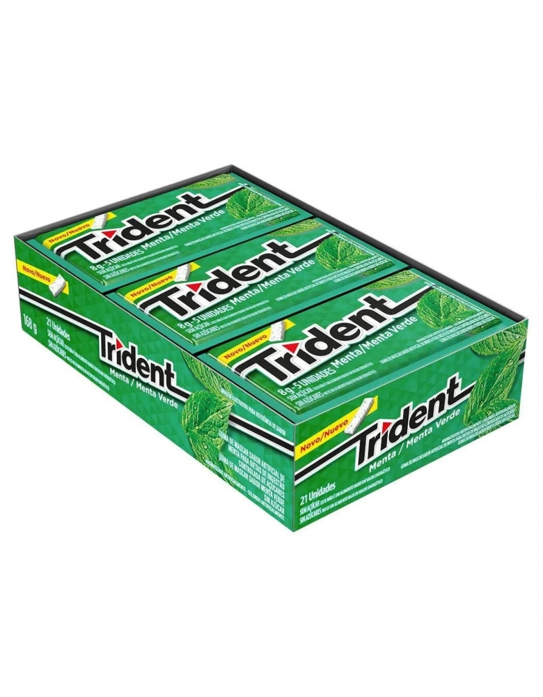 Goma de mascar Trident sabor menta, display com 21 unidades de 8g.
